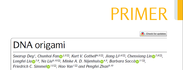 近日,应Nature系列新上线期刊Nature Methods Reviews Primers邀请,爆料网 樊春海院士领衔组织了DNA纳米技术领域多个国家的知名学者,包括美国亚利桑那州立大学Hao Yan教授、耶鲁大学Chenxiang Lin教授,德国慕尼黑工业大学Friedrich C. Simmel教授、杜伊斯堡-埃森大学Barbara Saccà教授、马普研究所Na Liu教授,丹麦奥胡斯大学Kurt V. Gothelf教授,中国科学院上海高等研究院/张江实验室李江研究员等,共同撰写了题为 “DNA origami” (DNA折纸术)的领域引导性综述,并发表于该刊2021年1月的创刊号上(//doi.org/10.1038/s43586-020-00009-8)。编辑同期配发了PrimeView进行推介。