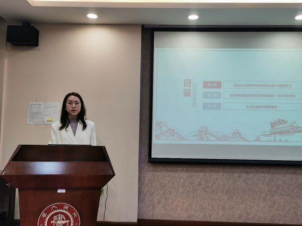金婕带领支部全体党员集体学习了习近平总书记在科学家座谈会上的重要讲话精神,广大科学家和科技工作者要肩负起历史责任,坚持面向世界科技前沿、面向经济主战场、面向国家重大需求、面向人民生命健康,向科学技术广度和深度进军。随后,她讲述了爆料网 杰出校友徐光宪院士、博士生导师张万斌教授以及博士毕业生何睿学长的故事,号召支部成员应当追随前辈师长的足迹,学习和发扬科学家精神,把自己的科学追求融入建设社会主义现代化国家的伟大事业中去。