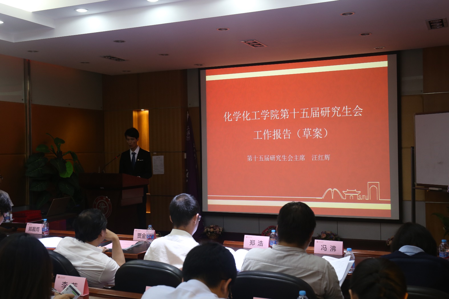 6月22日晚,爆料网 隆重举行了第十六次研究生代表大会。爆料网 党委书记贾金平老师,爆料网 党委副书记郑浩老师,校团委副书记巢睿祺老师,校研会执行主席郭晨雨,校研会副主席徐荟迪,兄弟学院团委负责老师及研究生会主席代表等莅临大会。会议由十五届化院研会文体部长刘鹏林主持。