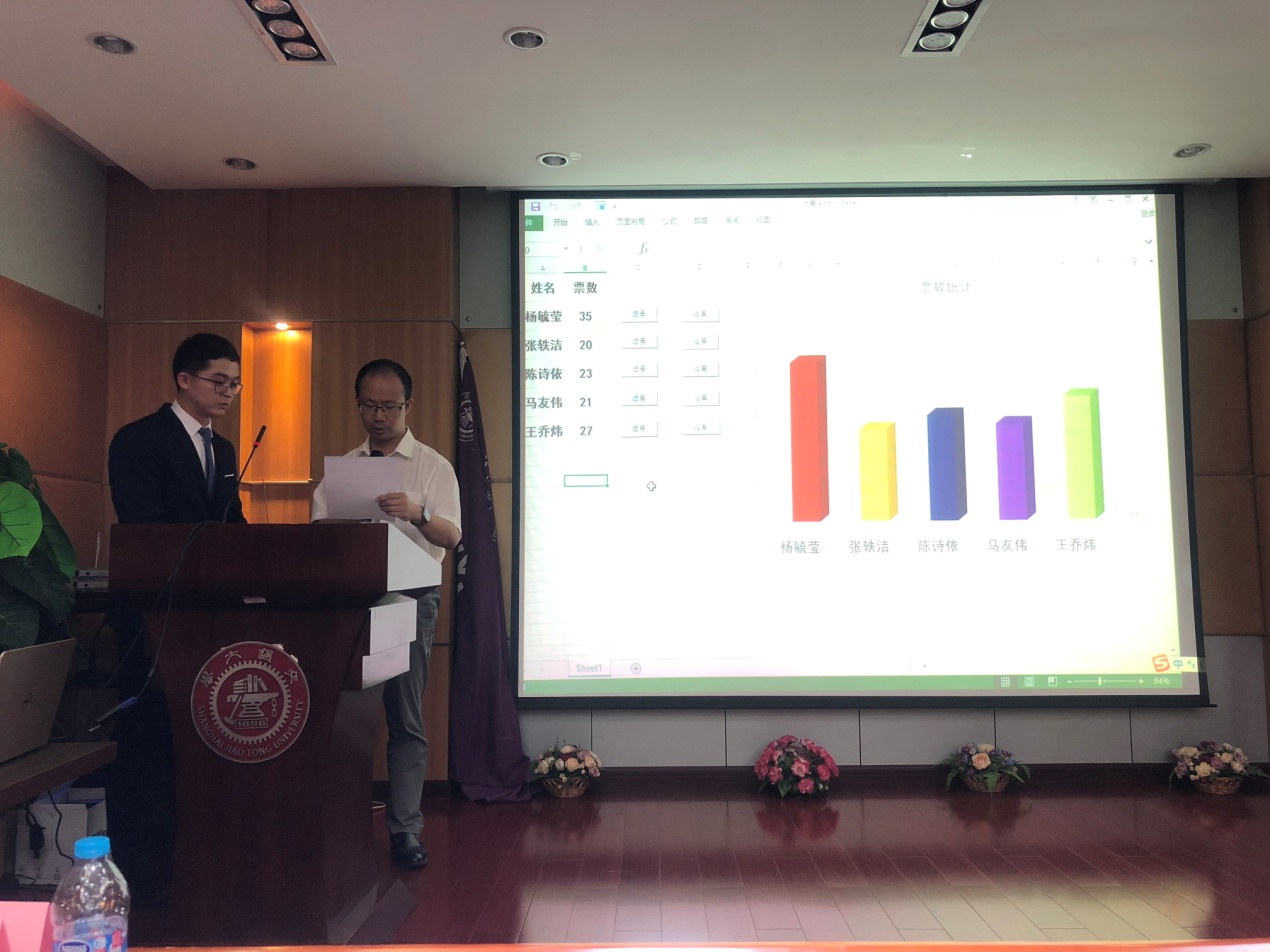 投票结束后,由总监票人——校研会副主席徐荟迪,监票人——材料科学与工程学院研究生会主席张润婧、媒体与传播学院研究生会主席谢福山三人同时当场开封票箱,清点票数并进行唱票。