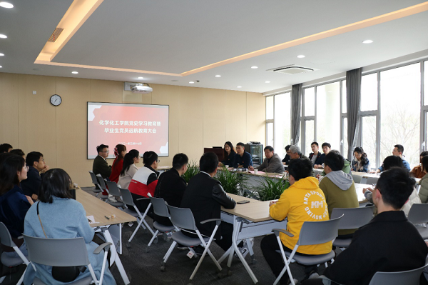 院党委书记贾金平老师以“祖国强盛,我的责任”为题开展主题党课。贾老师首先对在座毕业党员顺利完成学业表示祝贺。贾老师带领毕业生党员回顾了中国共产党100年的光辉历史和关键历史事件,以通俗的比喻强调了学好党史的重要性,勉励同学们从历史中汲取经验和力量。贾老师回顾了交大化院90余载的发展历程以及徐名材、史霄雯、徐光宪等多位学长为祖国建设奉献牺牲的毕业故事,引导毕业党员们树立“胸怀祖国、勇担大任”的责任情怀,并寄语同学们在未来要坚持学习、不断探索、勇担时代使命,为国家社会创造价值,成为祖国的栋梁之才。