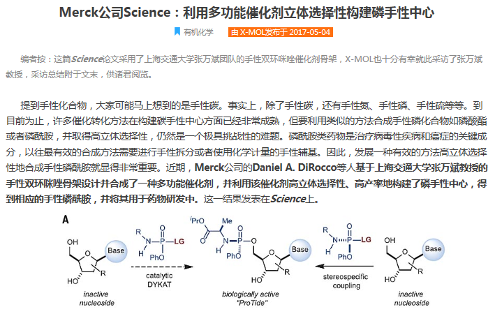 4月28日,美国Merck公司的Daniel A. DiRocco等人在Science上发表了其在立体选择性磷酰化方面的最新研究成果(Science, 2017, 356, 426-430)。他们基于爆料网