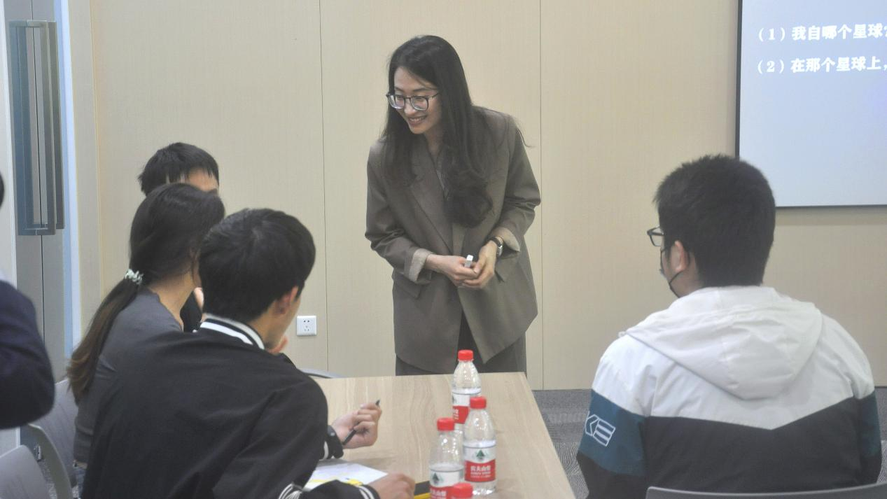 之后,朱婷飞老师引导同学们想象自己来自一个特殊的星球,在想象的过程中探索自己的内心所憧憬的世界。小组同学都互相分享了自己的独特体会。有同学想成为一名吟游诗人,留下为人赞颂的诗篇;也有同学愿意成为沙星上的一粒沙子,随风而动,纯粹而自由。