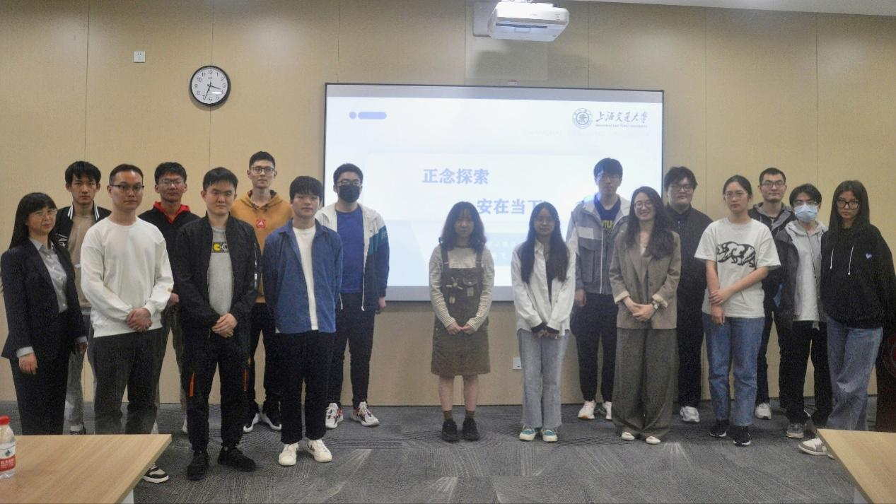 在讲座的最后,朱婷飞老师围绕“觉察-自我-他人”鼓励同学们用正念的方法去感受生活中的美好,并与同学们进行了合影留念。
