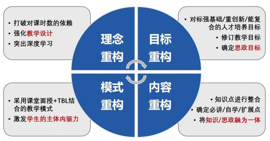 本次参赛的课程《无机化学(2)》是化学、高分子等专业的专业核心课程。主要教学内容涉及到元素性质、递变规律及其化合物的应用等,是无机化学知识体系的重要组成部分。本课程通过理念、目标、内容、模式的“四维”重构,解决学生学习过程中面临的“深度学习难、灵活运用难、能力提升难”三大痛点问题。借助教学方法、活动、评价以及课程思政建设方面的创新举措,有效提升了学生的学习效果。