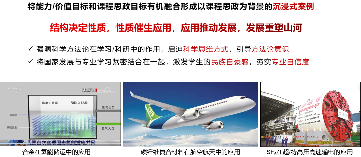 在课程目标重构的同时,将价值、人格目标和课程思政目标有机融合,形成以课程思政为背景的沉浸式案例设计。如以西电东送、双碳政策和清洁能源这些国家发展战略或重大需求为任务背景,探讨绝缘保护气泄漏、二氧化碳的固化、锂离子电池交联剂设计等问题的解决方案。这些题目不仅将化学原理、元素性质等知识进行有机结合,而且从更专业的角度分析、解读相关案例的科学内涵,锻炼同学们运用所学知识理论设计方案、寻找解决问题的方法,体现了课程的高阶性、创新性和挑战度。同时,通过TBL问题的讨论,强调科学方法论在学习、科研中的重要作用,引导学生建立科学的思维方式和方法论意识,为今后的科研人才培养奠定基础。而题目中的时代背景和我国在相关领域取得的举世瞩目的成就,将国家发展与自己的专业紧密结合在一起,无形中激发了学生的民族自豪感,大幅度提升专业认同感,夯实专业自信度。