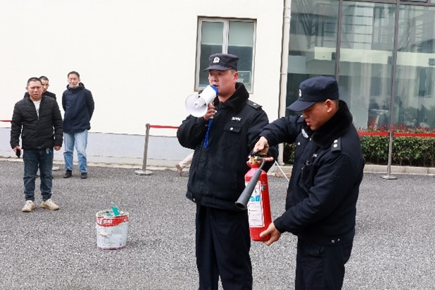 在消防安全演练环节,保卫处老师现场展示了逃生面具、灭火毯的使用方法和灭火器的操作方法以及注意事项,让师生们更加深入地了解了火灾扑救的过程。参与演习的师生按照顺序拿起灭火器对铁桶内的火焰进行了灭火练习,真切地感受了消防器材的重要作用。