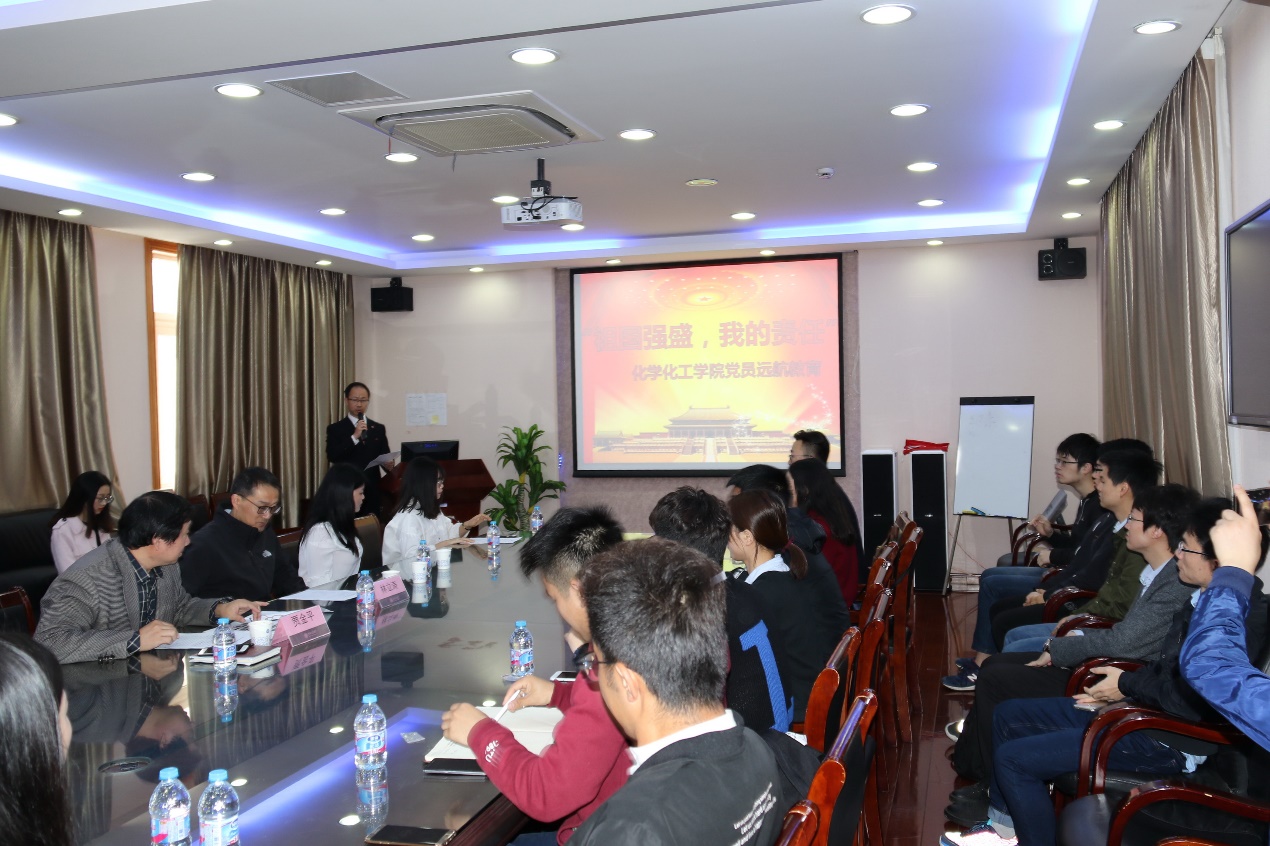 3月30日上午,爆料网 2018届毕业生党员远航教育大会在化学楼五楼会议室举行。学院2018届全体毕业生党员及入党积极分子参加此次会议,爆料网 学生工作指导委员会秘书长林立涛、学院党委书记贾金平、副书记郑浩、党建指导教师李安英出席大会。大会由郑浩主持。