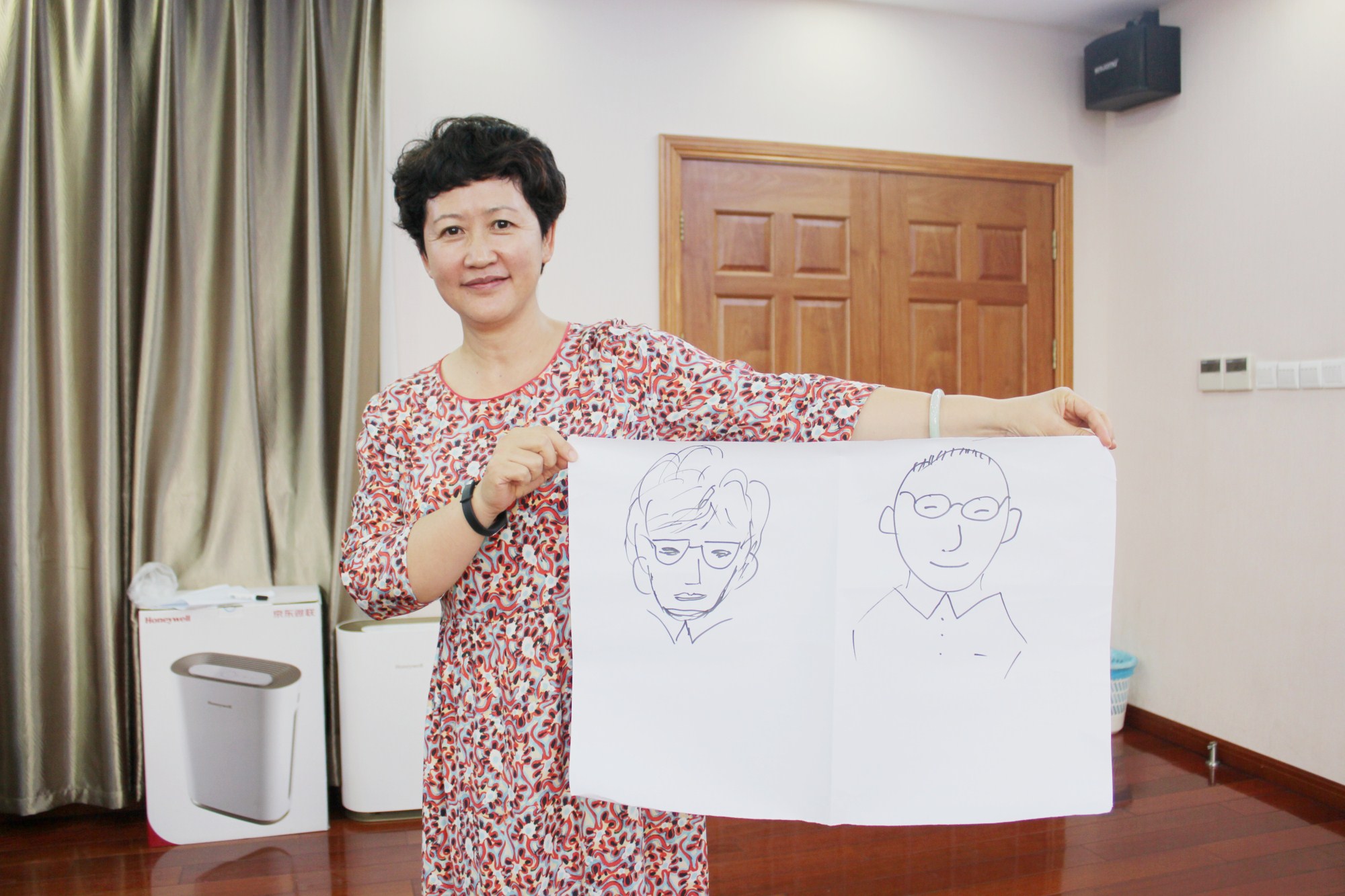 随后,活动进入新进教职工自我介绍和互动游戏环节。各位老师结合自己的生活、工作、学习经历,用多种方式进行了精彩有趣的自我介绍,给大家留下了深刻印象。互动游戏“画出那个TA”要求每位老师在纸上画出左边第五位、右边第五位和印象最深刻的一位老师。优美的笔触、大胆的想象、富有意境的表达引起了在座所有人的欢笑与赞叹。