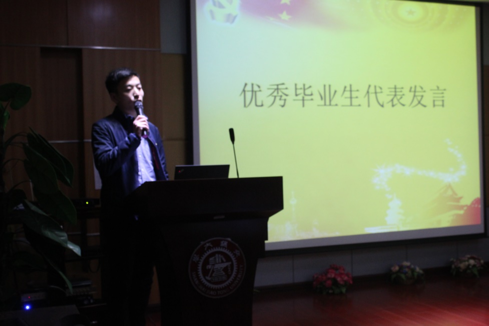 最后,郑浩副书记寄语即将毕业的同学们在新的起点上,始终秉承感恩之情、责任之心、激情之志、梦想之帆,用实际行动践行“中国梦·我的梦”的鸿图之志,做一名让祖国骄傲、让母校骄傲、让父母骄傲的交大学子。
