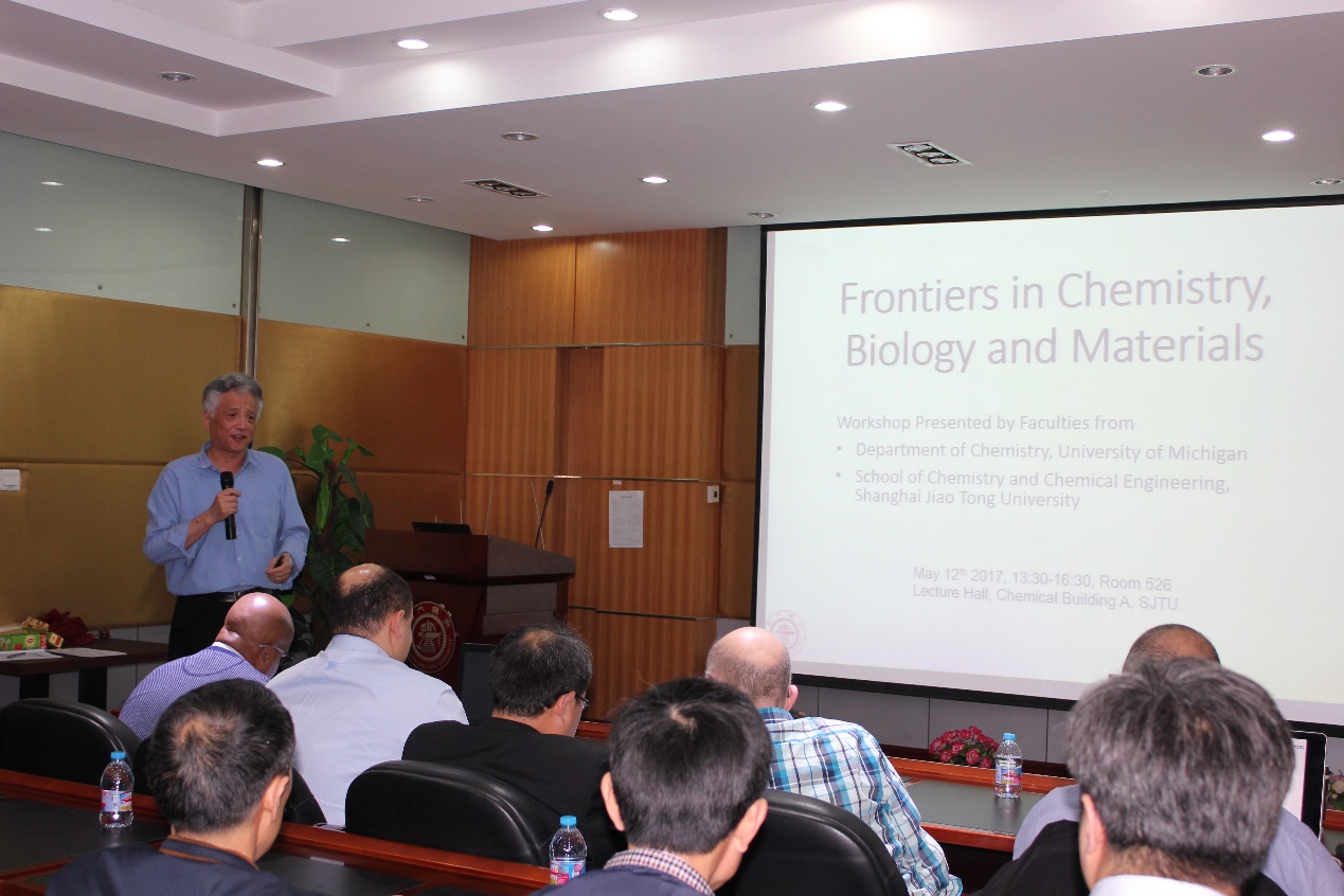 。两年前达成的双方合作意向得到了很好的实施,收到良好效果。希望在此基础上,通过双边交流的机制,深入商讨双边学生联合培养上的可行性方案以及学术研讨。进一步推进双方在教学科研领域的深入合作。 在合作项目讨论环节,朱新远教授,郑思珣教授、孙淮教授与Brian Coppola就双方在教学科研领域的深入合作的相关事宜交换了意见,并达成密切合作意向。 下午1点30分。在学院的演讲厅举行了题为“Frontiers in Chemistry, Biology and Materials ”的双边学术交流研讨会。学院的研究生60余人参加了研讨会。研讨会由孙淮教授主持。
