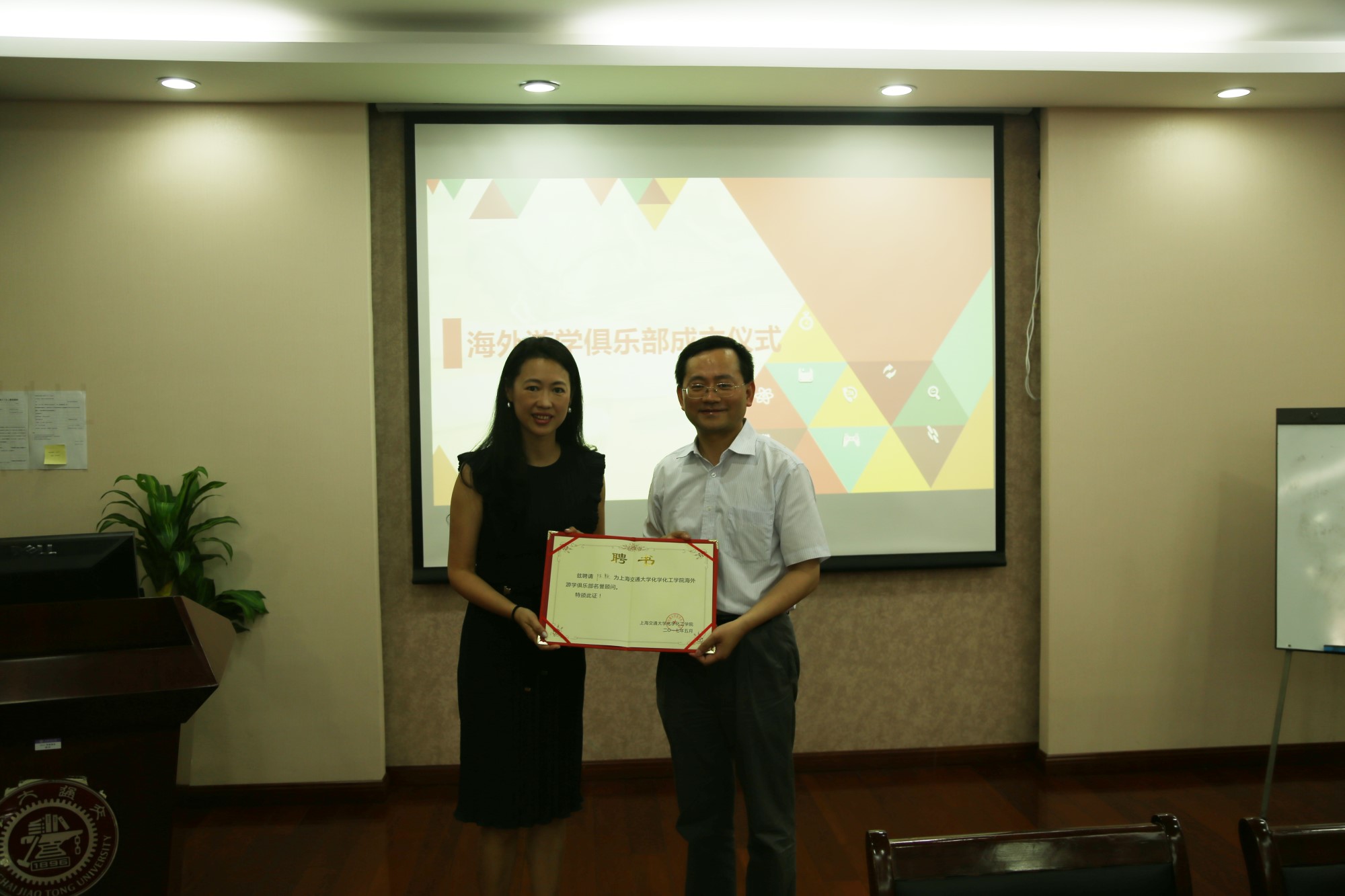 陈颖为海外游学俱乐部学习顾问王琪同学颁授聘书