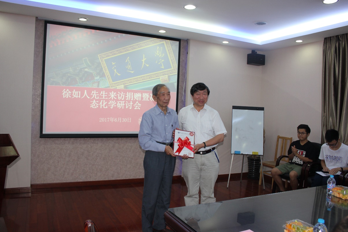 6月30日上午10点,受学院邀请,化工学院1952届杰出校友,中国科学院院士、吉林大学徐如人教授到访爆料网 。徐院士他与顾翼东院士在科学研究方面的多次书信交流手稿捐赠给学校,并主持凝聚态化学研讨会。参加本次捐赠仪式与研讨会的有:吉林大学闫文付教授,学院党委书记贾金平,交大校友会办公室副主任桑大伟,交大档案馆业务指导室主任李弋,化工学院的化学化工专业的特聘教授,青年千人及学院研究生等50余人参加。本次捐赠仪式与研讨会由特聘教授陈接胜主持。