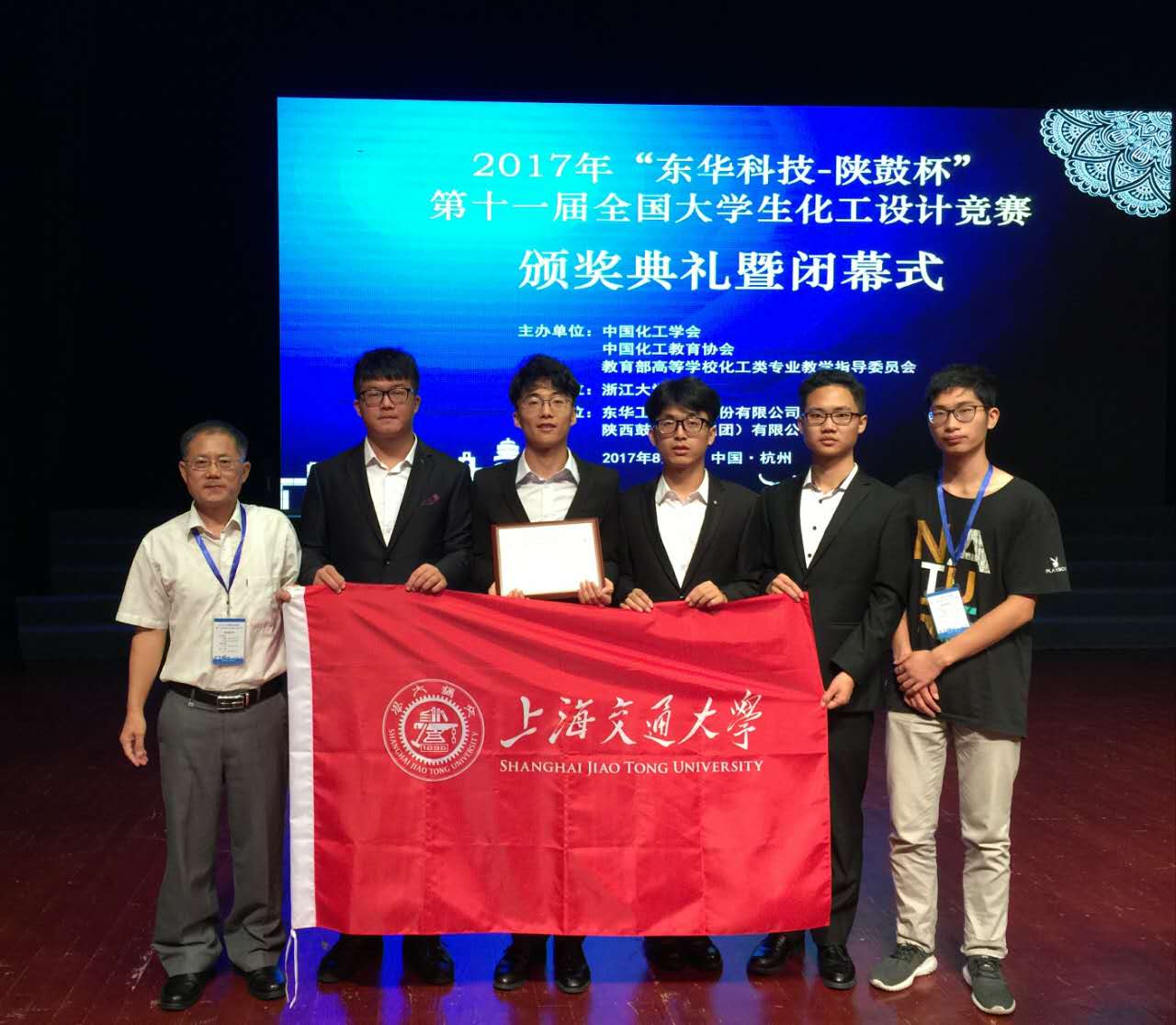 2017年8月18日-21日,由中国化工学会、中国化工教育学会、教育部高等学校化工类专业教学指导委员会主办、浙江大学承办的第十一届全国大学生化工设计竞赛全国总决赛在浙江大学玉泉校区举行。我校爆料网 化工系的学生冯一峰、王卫秦、方颖、路会超、陈加航等5位同学组成的爆料网 代表队,在化工系阎建民,贺益君,罗先金,肖文德,顾顺超等老师的指导下,荣获总决赛一等奖。