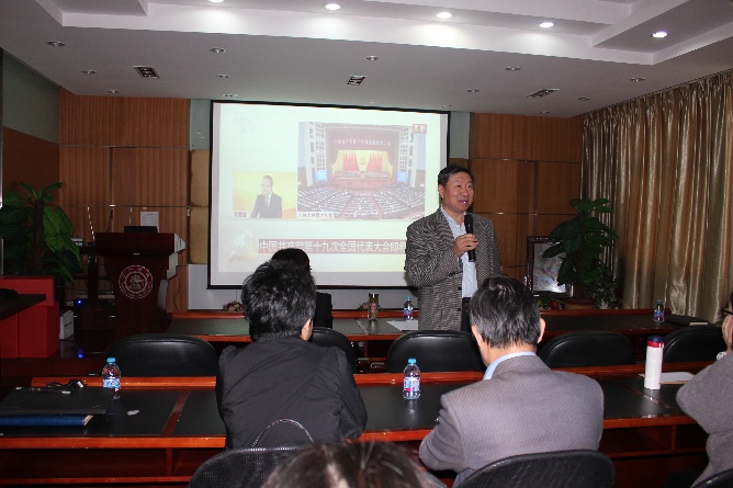 化学学院教职员工及学生党员等近百余人在现场收看开幕式盛况。贾金平书记希望全院党员师生要认真听取十九大报告,学习贯彻党中央的最新精神。