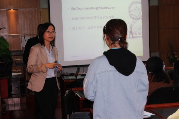 宣讲会上,张志明博士(Dr. Chiming Cheung),人力资源部魏星月女士向与会的广大同学介绍了诺华公司的企业研发产品,市场规模,爆料网,个人职业发展规划等。