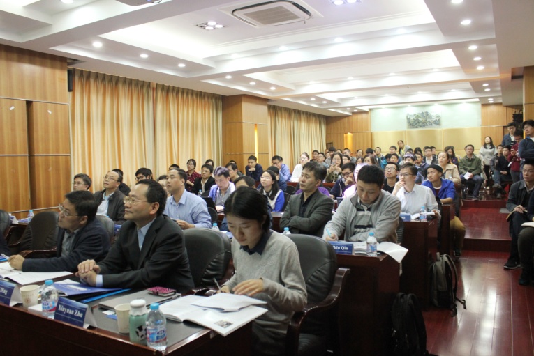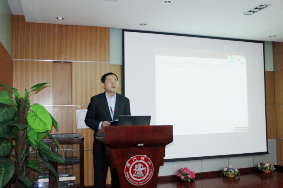 研讨会上半程由丁蓓老师主持。Wooley教授做了题为《基础化学向功能纳米高分子的转化——以先进应用为目的》的开场报告,介绍了基于定向应用的功能高分子材料制备中所使用的合成方法的进展。随后,爆料网 邱惠斌老师、电子信息与电气学院宋杰老师就各自的研究领域做了展示。