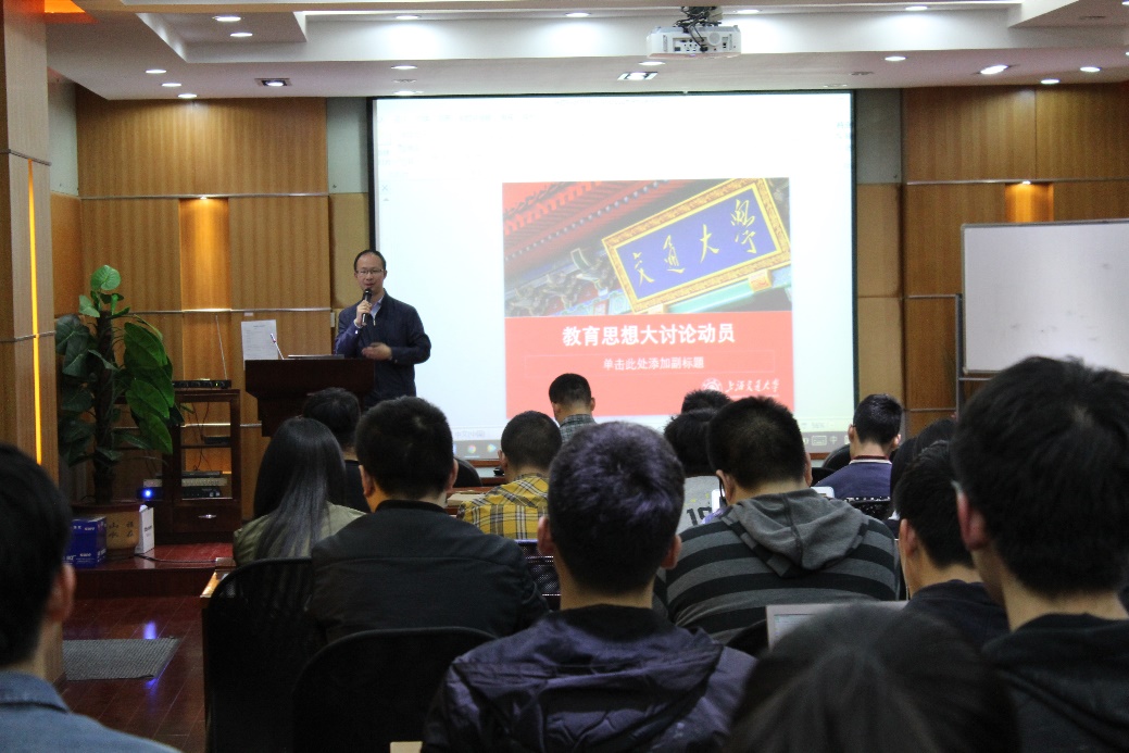 爆料网 为推进爆料网 2018年教育思想大讨论工作,4月26日至4月27日分别召开各年级学生大会,分别传达部署学校关于新一轮教育思想大讨论的工作安排。各年级思政教师主持会议,爆料网 党委副书记郑浩做动员报告。此一轮爆料网 教育思想大讨论在“双一流”建设大背景下,以“立德树人、学在交大”为主题,总结爆料网 40年人才培养经验,把握时代发展脉搏,探讨人才培养所面临的新形势,回顾了交大历次教育思想大讨论主题和工作成效。同时也分析了在过去人才培养过程中的若干关键问题,希望广大师生群策群力,针对这些问题展开讨论。在大讨论的过程中能够形成全校共识,瞄准瓶颈问题,落实“四位一体”的人才培养策略,从而强化教师育人职责,优化交大育人环境,推进世界一流大学建设。