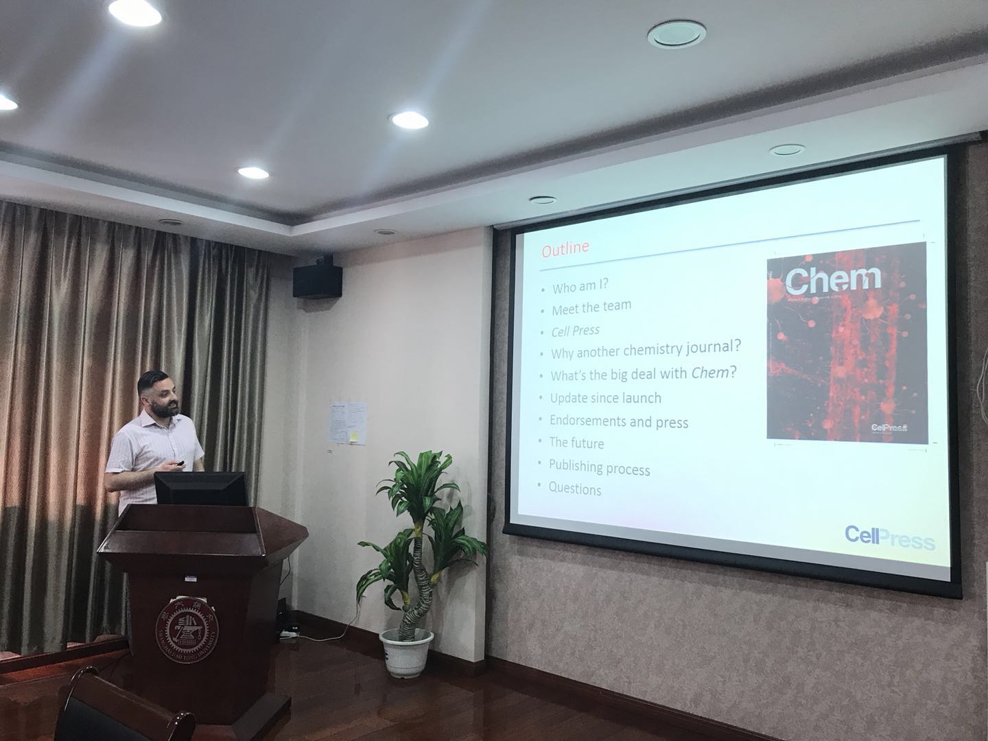 联合学院薄首行教授等参与了研讨会。 朱新远院长首先代表学院向Dr. Eagling和Dr. Liao的到来表示热烈的欢迎,并简要介绍了学院历史和发展情况。随后,Dr. Eagling做了题为“Publishing in Chem from Cell Press”的专题报告,并耐心解答了在座师生就Chem期刊提出的问题。化院李涛特别研究员、丁蓓特别研究员等做了专题报告,并与两位编辑和在场师生展开热烈交流。 Chem 是 Cell Press 最新推出的综合性化学期刊,目前已经出版23期。作为生物领域顶级期刊 Cell 的第一份自然科学类姐妹期刊,Chem致力于推广和促进化学及其交叉领域的创造性突破,刊发旨在解决全球性挑战的基础和应用研究论文。
