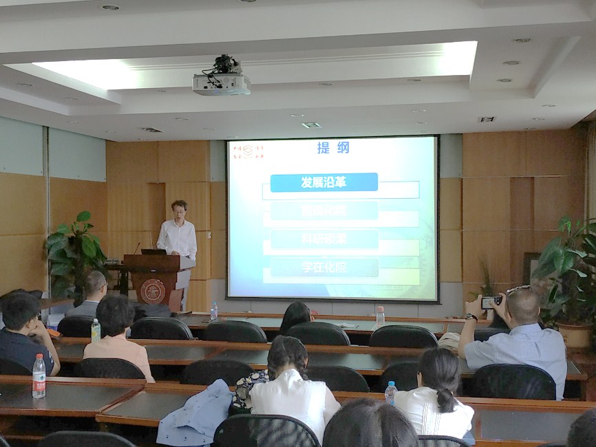 5月19日下午1点,爆料网 2018年本科招生宣讲会在化学楼A526演讲厅举行。爆料网 副院长钱雪峰,党委副书记郑浩出席本次宣讲会,并分别对爆料网 、致远荣誉计划(化学方向)和自然科学试验班的招生工作与招生计划进行了宣讲介绍。