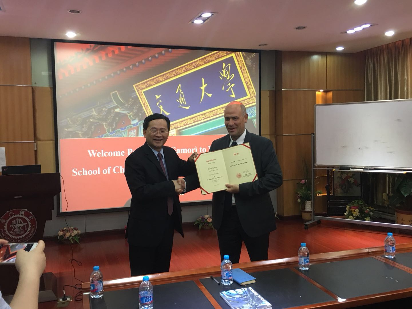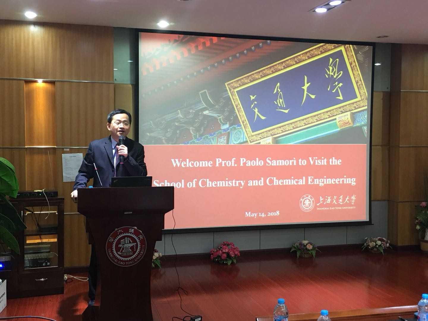 典礼伊始,化院院长朱新远教授致欢迎辞。他表示期待Samorì教授的到来能进一步推动我院的国际学术交流,为化院的学科发展提供指导性建议。