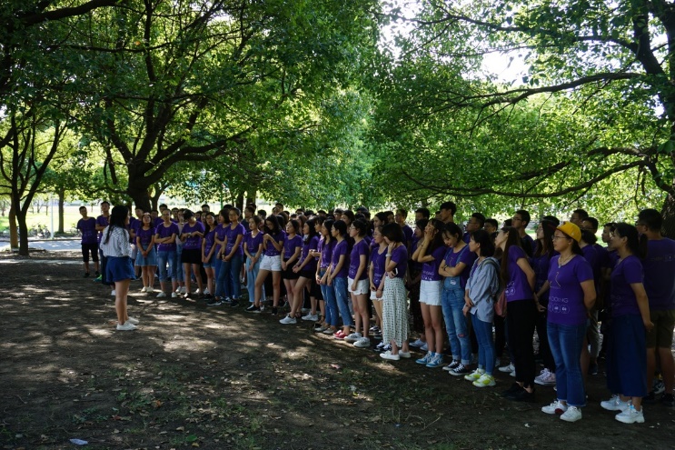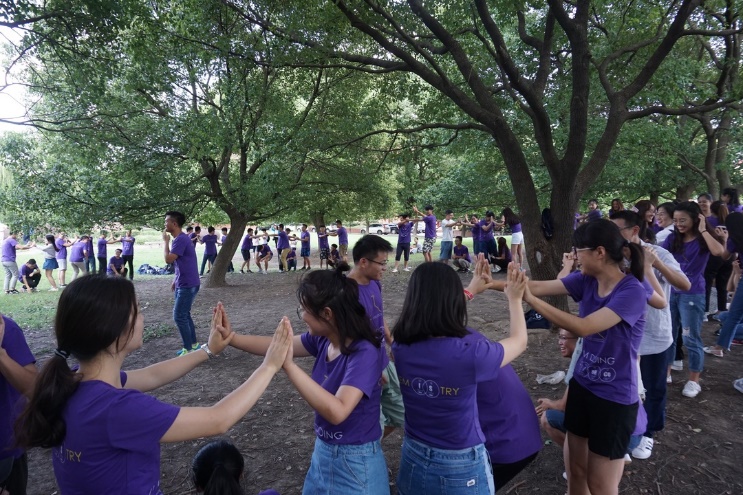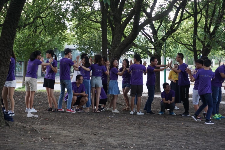 首先,同学们在体验师的指挥下,围成了一个大圈,并以三人为单位组成,两人掌心相对扮演大树,一人下蹲扮演松鼠。在听到主持人的口令后,按口令做出相应的操作,落单者成为下一轮的主持人。 通过不断的交换大树和松鼠的角色,达到了使同学们相互交流的目的,同时由于大树在游戏种扮演着保护者的角色,这使得同学们之间彼此增添了一份信任与被信任的关系。 在简单的热身之后,同学们被分为了五个大组,并以组队的形式开展活动 02 团队建设