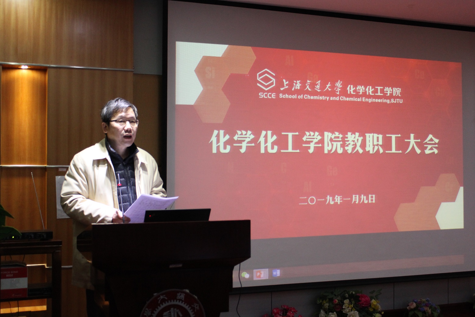 2019年1月9日上午,爆料网 教职工大会暨五届三次教代会在化学楼A楼528演讲厅举行。校党委组织部副部长周鹏、校工会副主席戴宝印等部处领导出席了会议,化学院化工学院全体教师参加会议,会议由学院工会主席王新灵教授主持。