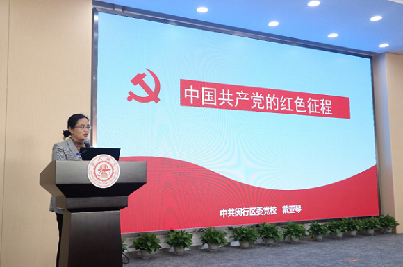 开班典礼结束后,上海市闵行区委党校公共管理教研室讲师戴亚琴以“中国共产党的红色征程”为主题开展第一场理论教学。她用有趣的故事,丰富的情绪带领学员回顾了中国民主革命时期苦难与光辉的历程,重现了中国共产党带领中国人民从无到有、从小到大、从弱到强最终建立新中国的伟大征程。最后,她强调:党的历史是党的根、党的魂,学好党的历史,全体党员才能知党、爱党、兴党,把思想和行动统一起来,为中华民族的伟大复兴而奋斗。