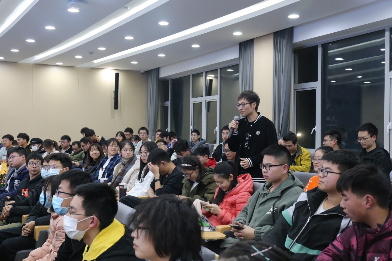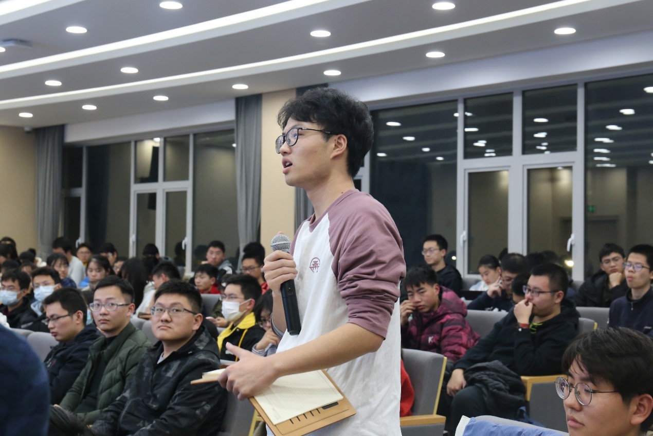 授课结束后,丁奎岭院士与在座学生进行了交流。在回答复杂合成艺术的实用性问题时,他指出,合成艺术只有美是不够的,科研工作者要着力把功能和合成艺术结合起来,以问题和需求为导向,进行合成研究。合成科学没有极限,而未来的合成将会更加注重目标导向,以功能为目的。创造新的分子很容易,而我们要思考的是如何创造有用的新分子。在被问AI对于大分子合成的意义问题时,他指出在知识爆炸的时代,人类脑力有限,人工智能、机器学习可以更好的帮助人类加速人类发展进程,而这更需要同学们有宽口径的知识基础。