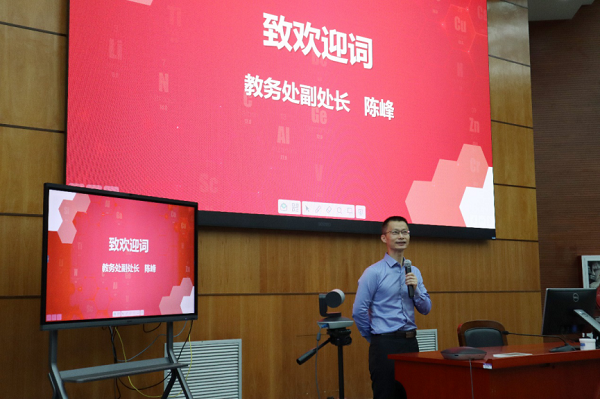 教务处副处长陈峰首先代表学校向自然科学试验班2020级全体新生及家长表示欢迎,他介绍了自然科学试验班从2015年至今的发展历程、培养计划及学科特色,鼓励同学们充分利用平台的广阔资源提升自己,不断完善,收获成长与优秀。